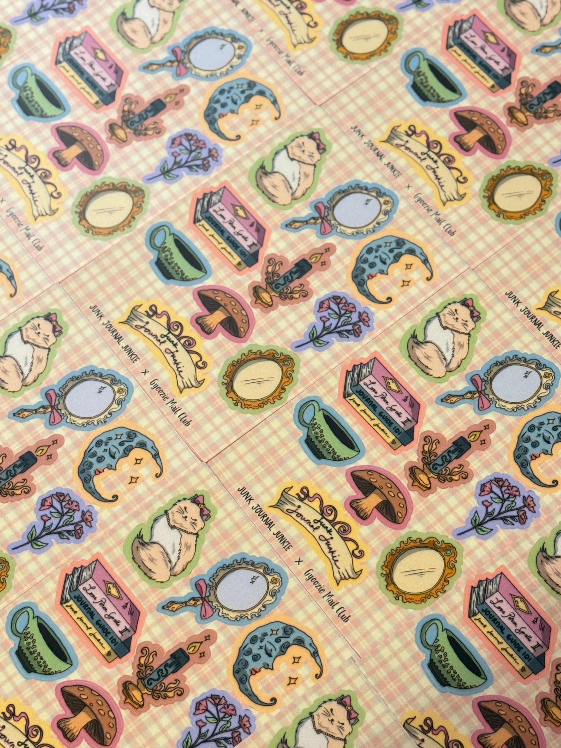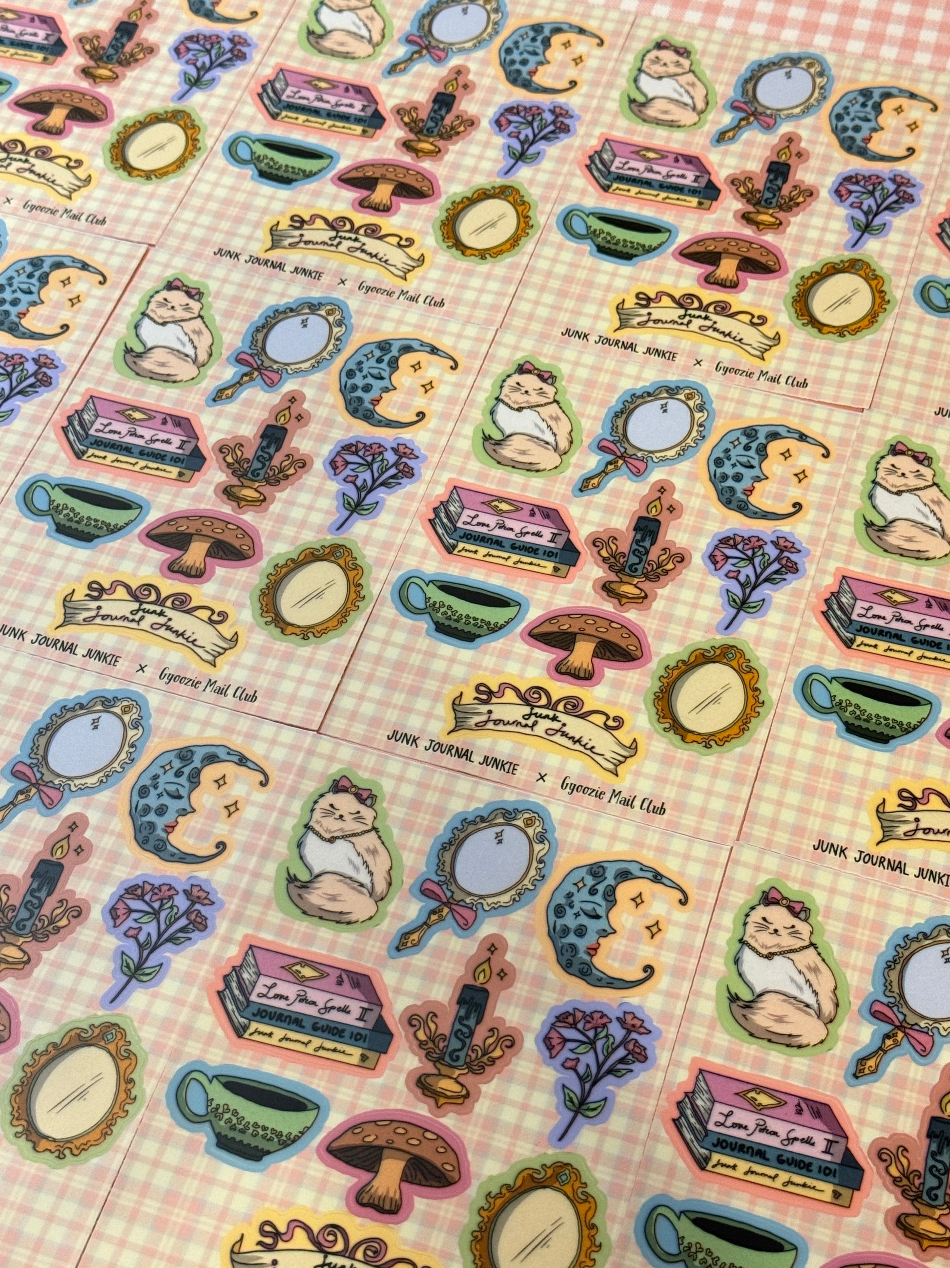 This limited-edition sticker sheet is a dreamy collaboration between Junk Journal Junkie and Gyozzie Mail Club, created especially for lovers of cozy stationery, junk journals, and whimsical paper goods.